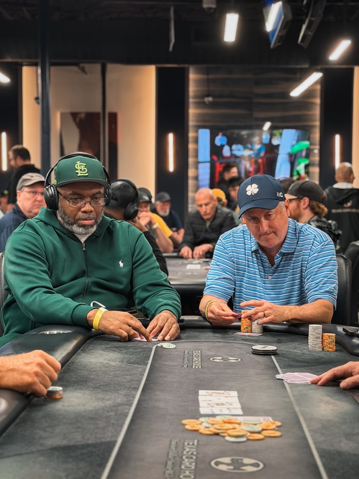 Blue was glad to see he had White dominated but White was open-ended to go with his dominated pair. White straightened out immediately on the 4♠ turn and the board-pairing river secured the double up for White.