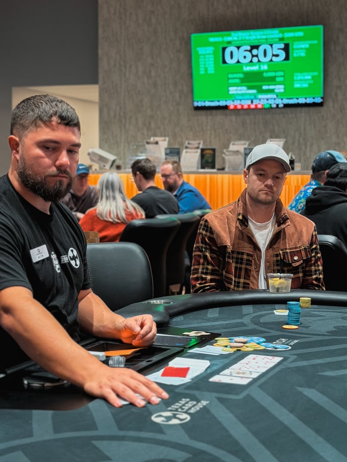 Benglis wasn't playing many hands but still held a small chip lead over Levesque. Players talked about the dynamic shift and game theory adjustments as Levesque positioned to take the chip lead from Benglis but Benglish held on and bagged the chip lead with 962,000.