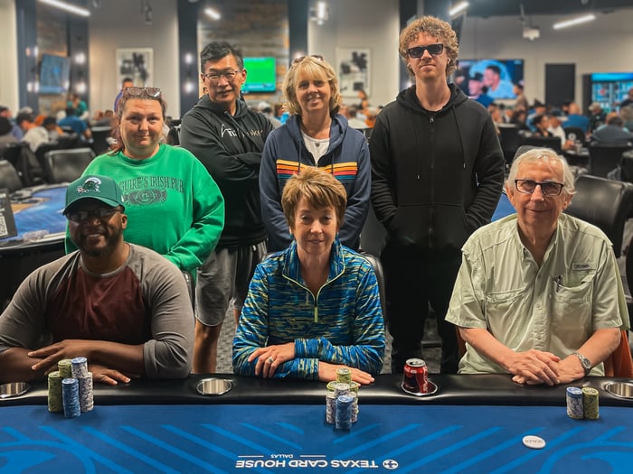 The final nine players each have $1,440 locked up but all eyes are on the top prize of $14,440 for first place.
