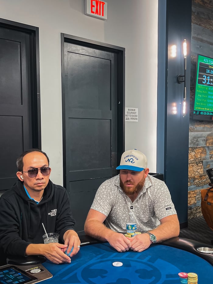 Luna was dominated the whole way down. Without finding his two-outer, Luna was eliminated on the money bubble. The remaining 13 players have locked up $390 on their $200 buy-in.