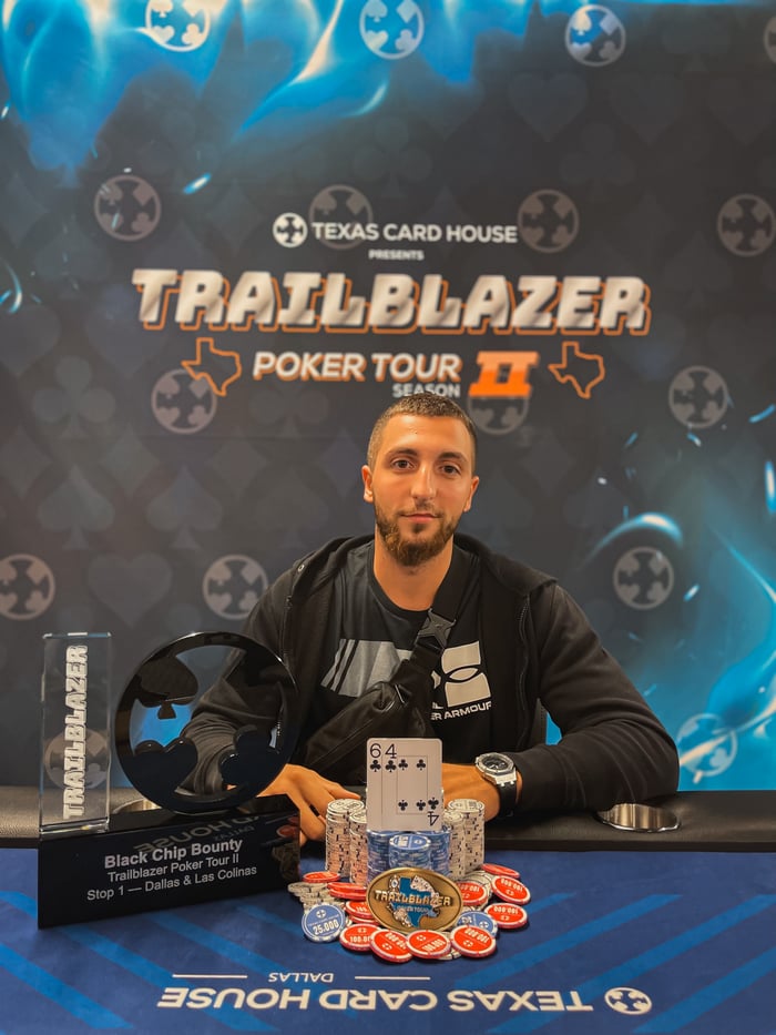 Romano takes the win for $10,900 and he also takes home the Event #18 Trailblazer Poker Tour trophy. Uman takes $8,800 for second place.