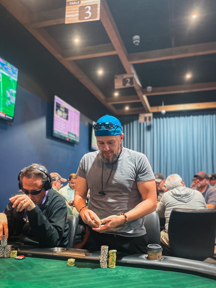 The 100+ field generated a prize pool of $26,950 and 47 players return from break at close of registration to play for $8,100 and the coveted Trailblazer Poker Tour trophy for first place!