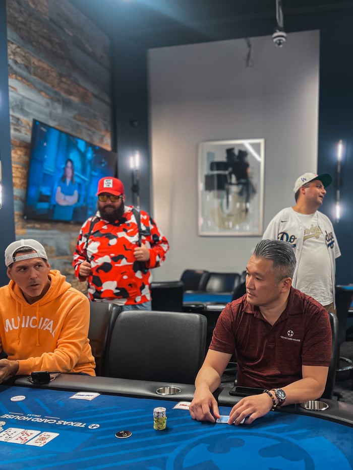 After the first hand of the 15,000/30,000/30,000 blind level, Mitchell Lloyd tagged in his partner Sam Morris. Zach Castro had just jammed into Lloyd's big blind and Lloyd was ready for Morris to take over for the final levels of play.