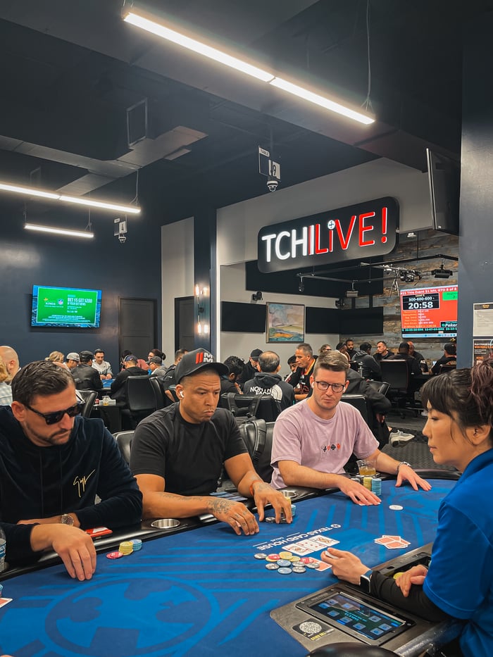 Blind levels are currently 40 minutes and will increase to 60 minutes at the final three tables. Players will play down to the final table tonight and return at 7:00 PM tomorrow to play down to a winner on TCH Live!